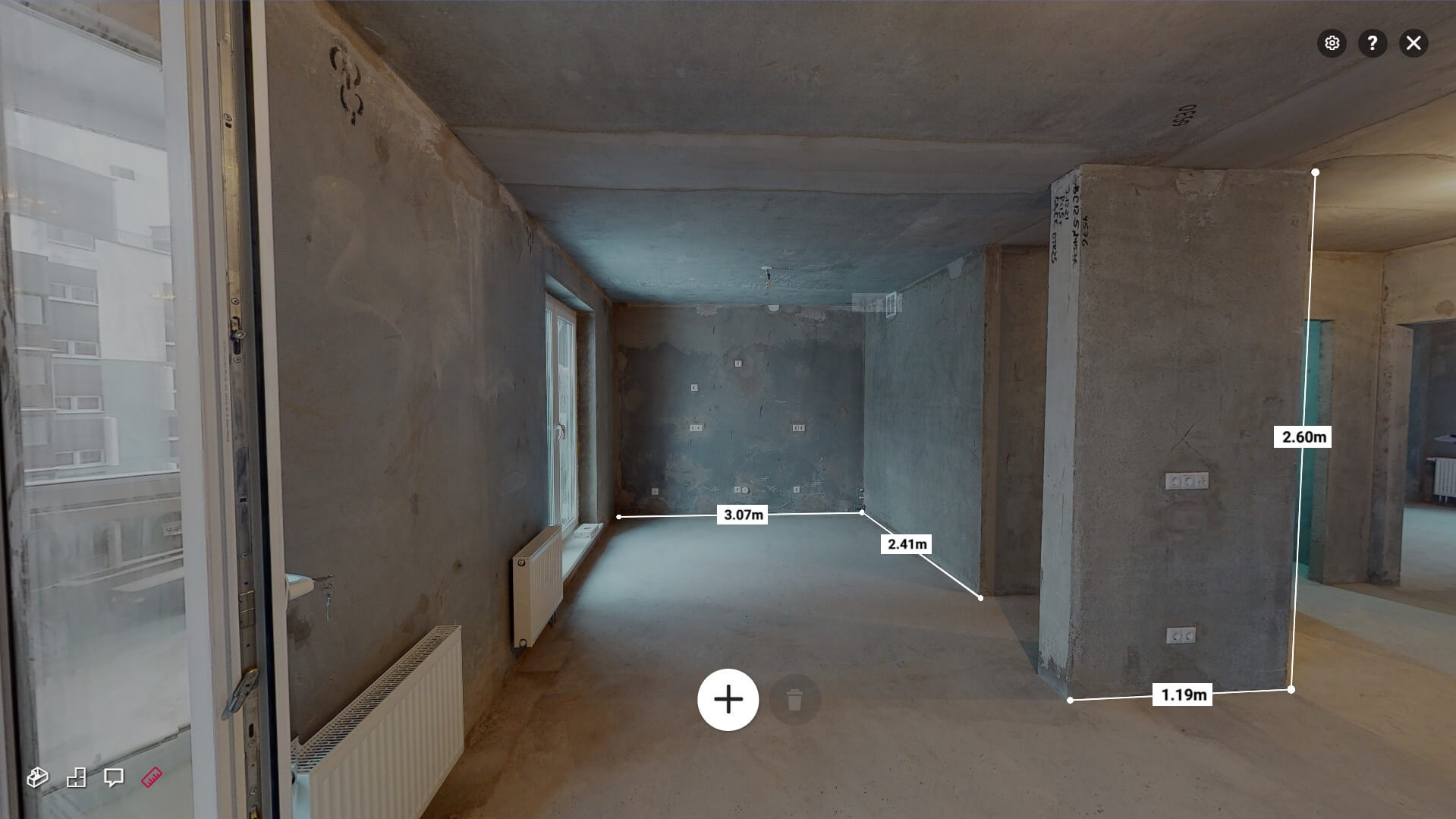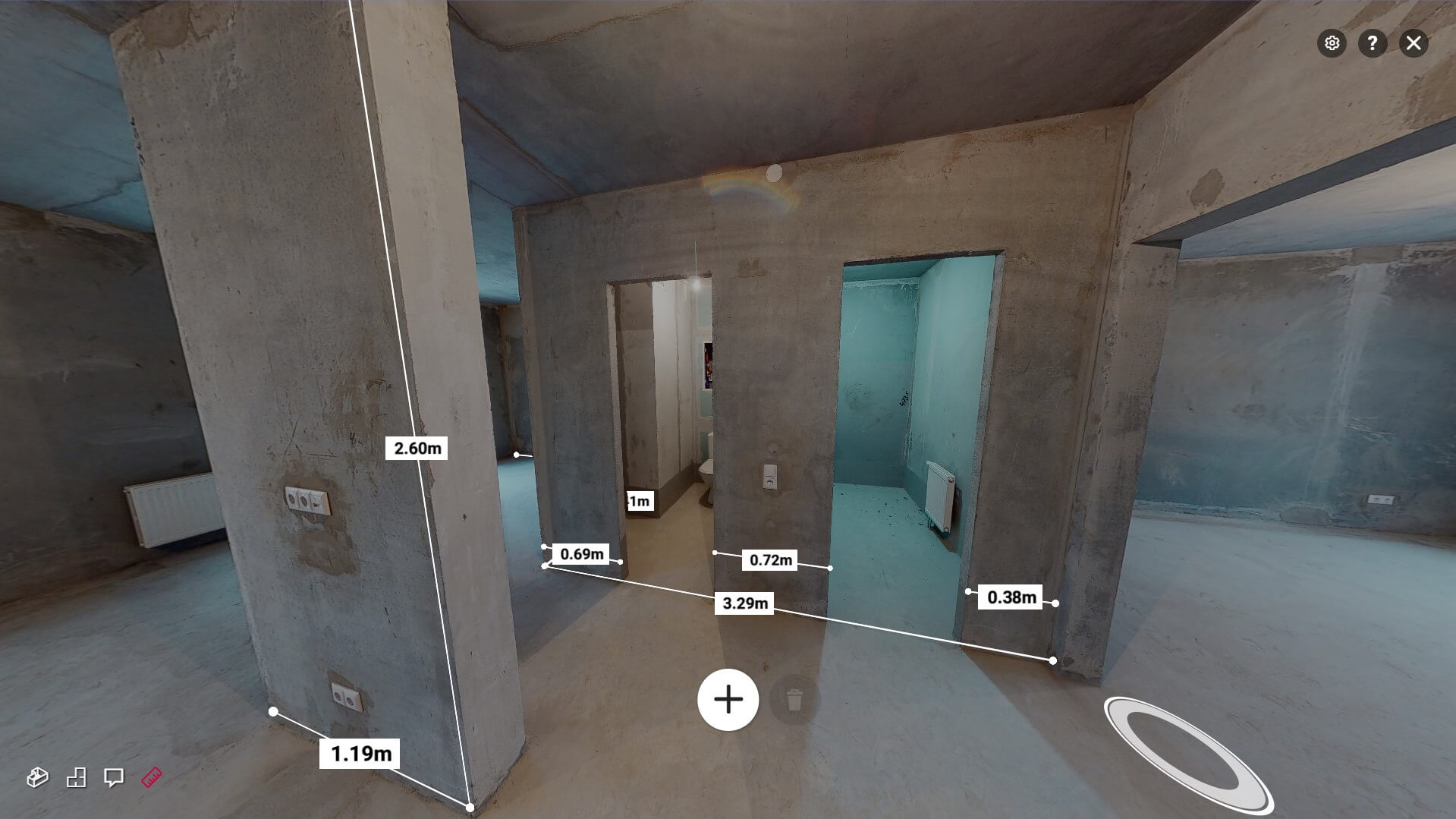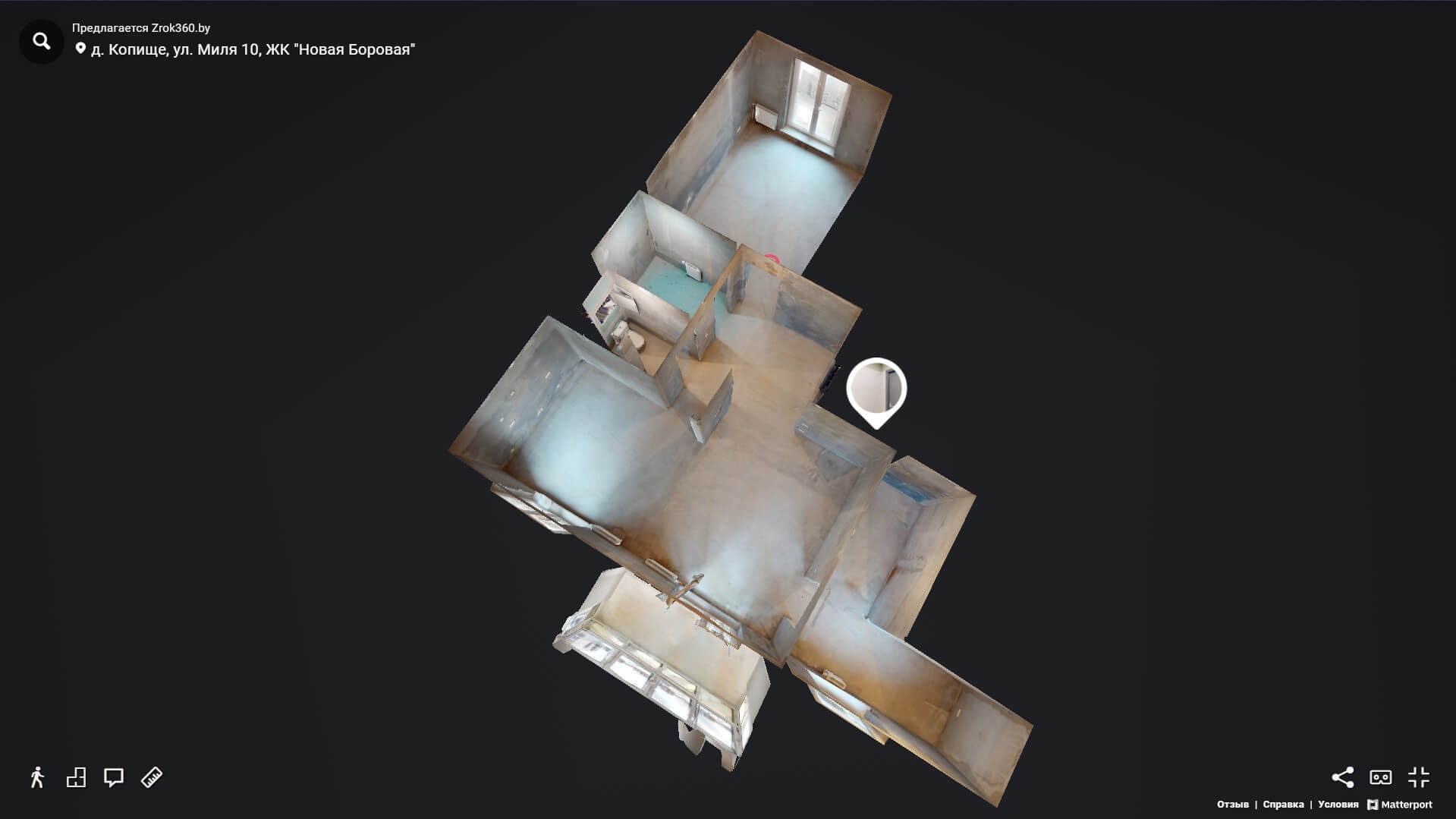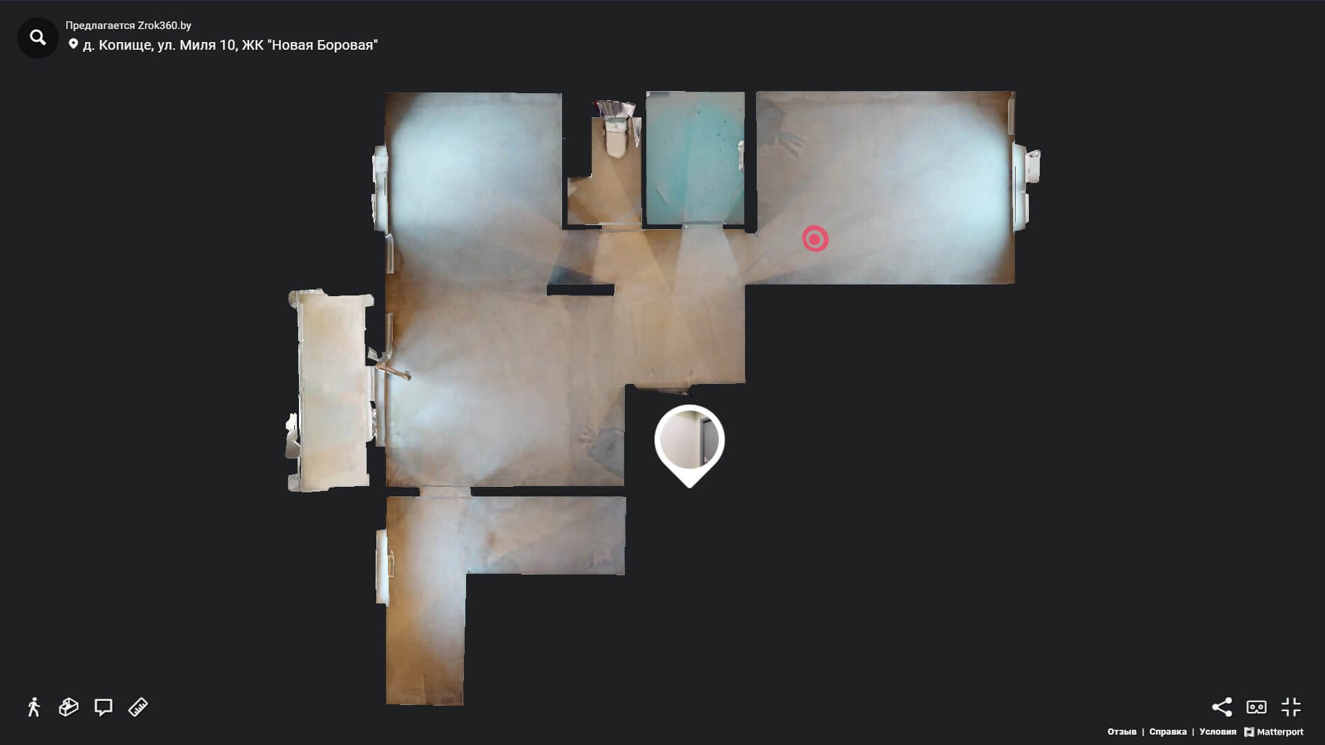 Wycieczka 3D do Matterport po mieszkaniu pod adresem: ul. Mile 10, kompleks mieszkalny „Novaya Borovaya”. Do pomiarów.